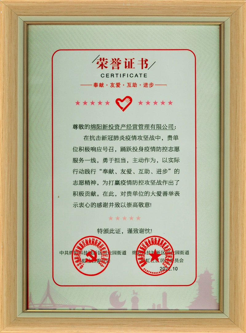 “奉献、友爱、互助、进步”荣誉证书