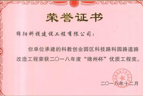 2018年度绵州杯优质工程奖